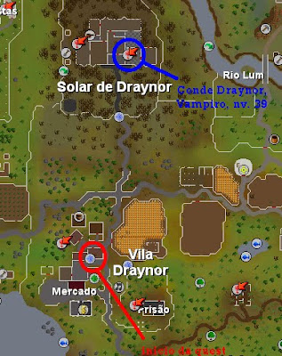 • Agora, se dirija ao Solar de Draynor, a casa assombrada. Tenha algumas comidas para ajudar a matar o vampiro.